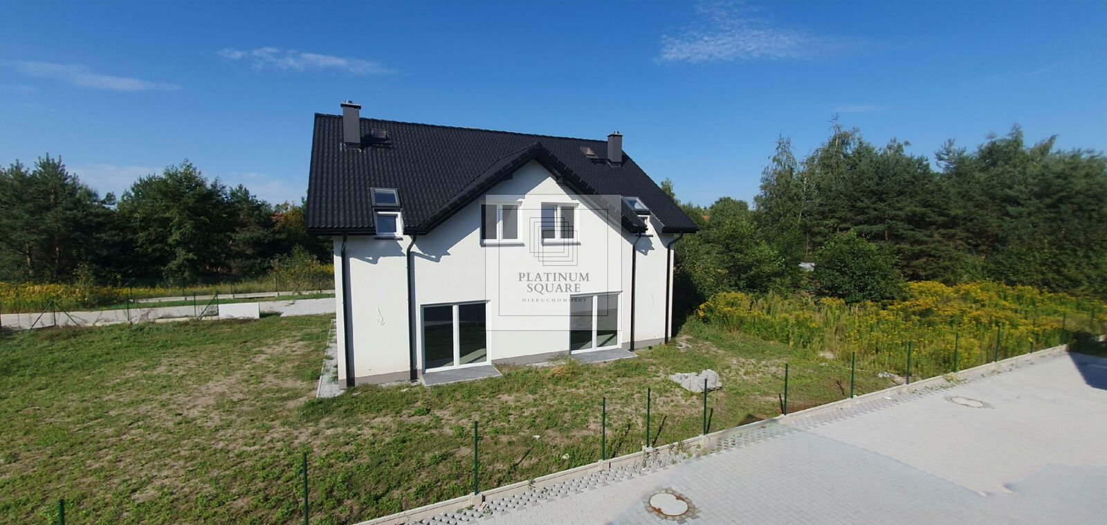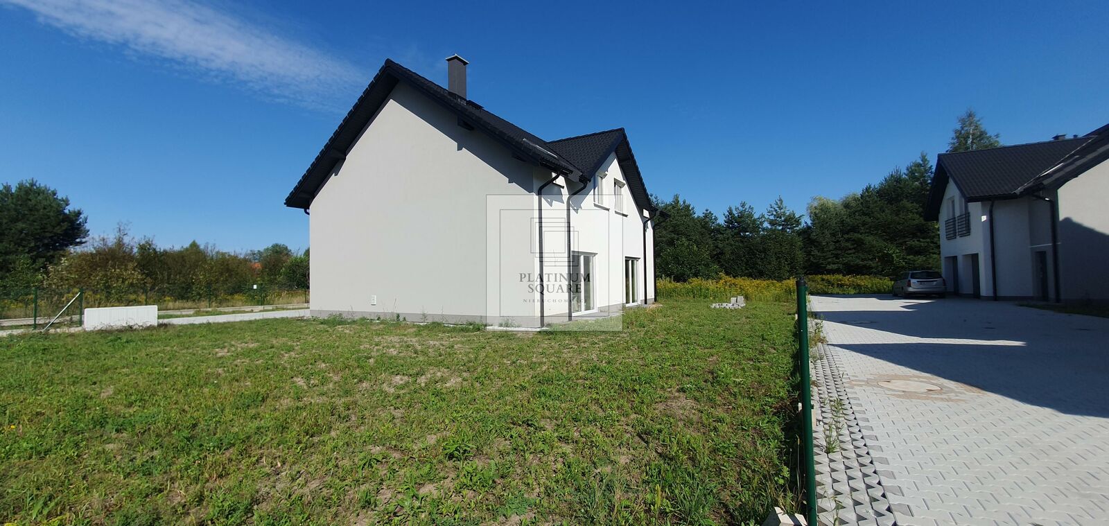 Podjazdy: kostka betonowa Ogrodzenie: siatka metalowa zgrzewana