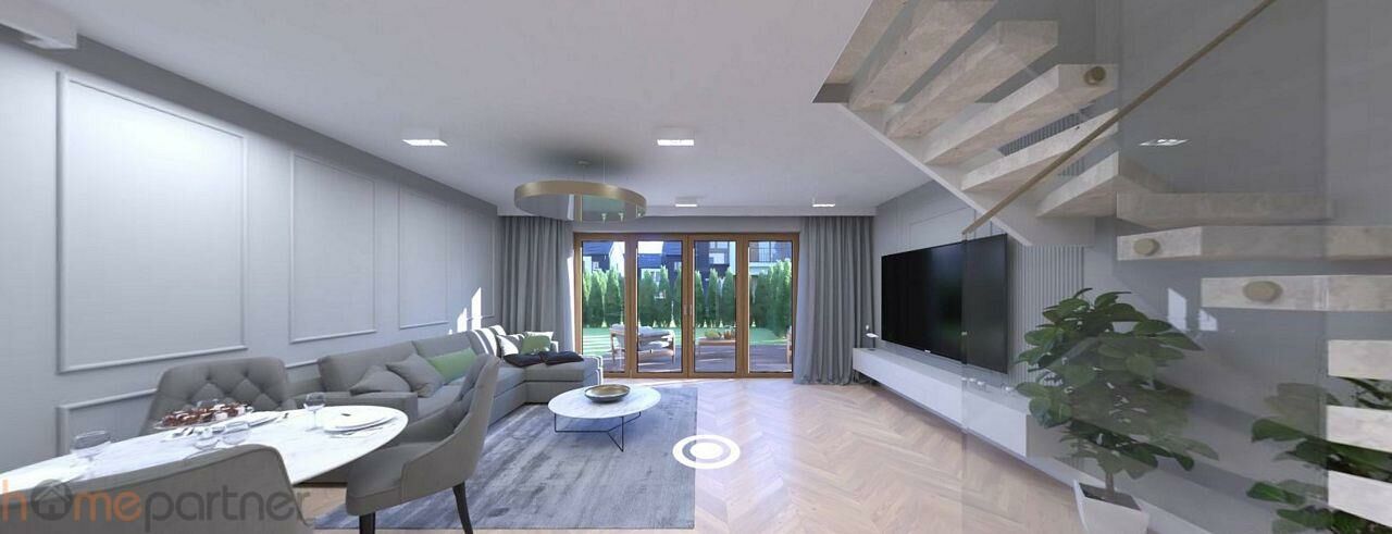 Na parterze znajduje się przestronny salon połączony z kuchnią, który dzięki bezpośredniemu wyjściu do ogrodu tworzy otwartą przestrzeń idealną do spędzania czasu z rodziną i przyjaciółmi.